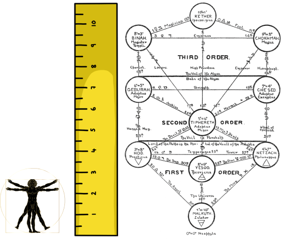 This attitude of taking the Order in this manner, as a positional arrangement of subjects in hierarchic positions representative of degrees of excellency or perfection, is attested by the manner in which their members apply this principle. In the masonic community, we find the practice of mutual positioning, where subjects of a certain degree of a certain order are transposed directly to another degree of another order, through the identification of rules of equivalency. In A⸫ A⸫, there are diverse cases of direct positioning by various rules. There are two notable cases of posthumous positioning by virtue of published works: Eliphas Levi positioned 7○ = 4□ by virtue of his works “Dogme et Rituel da la Haute Magie” and “Clef des Grands Mystères”, and Helena Blavatsky positioned 8○ = 3□ by virtue of the work “The Voice in the Silence”. There are at least two known cases of positioning by direct, special recognition: Charles Stansfeld Jones positioned 8○ = 3□ as recognized by his discovery of 31 as key to the interpretation of Liber Legis, and Karl Germer positioned 8○ = 3□ as recognized by the effects of his experience while imprisoned in nazi concentration camps. In all these cases, we have subjects compared to a rule which gives them their measure: this subject is here, that subject is there, all adequately positioned in a scale of subjects. This practice leads to the conception of the System as a Rule to measure Subjects.